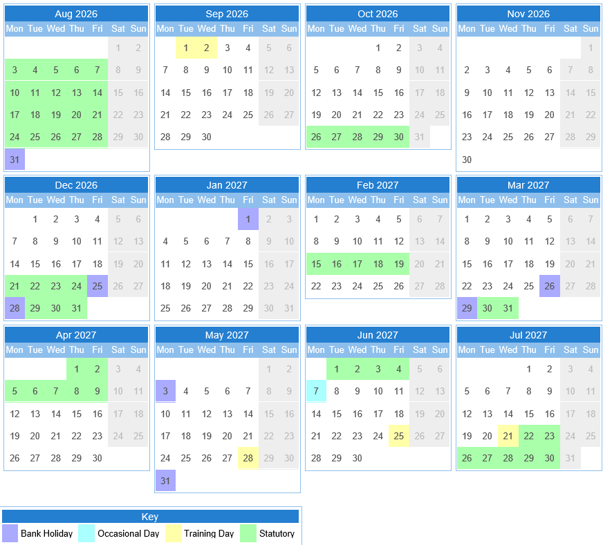 School Closed: Monday 3 May 2027 (Bank Holiday)